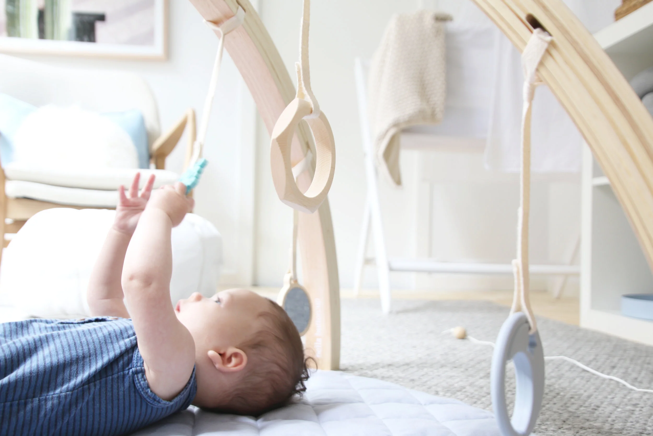 Play Bar by Bella Buttercup is a Scandinavian-inspired play gym, suitable for newborns through to 12 months. It helps baby comfortably explore milestones such as: tummy time, rolling over for the first time, learning to touch or feel and strengthen their legs before take-off! Available in Star Dust (pink and grey), Milky Way (blue and grey) and Dusky Skies (dove blue and natural)- the design has a structural elegance that adds design integrity to your home. For those who want a little more colour-love, get lacquered with Bella Buttercup’s Dipped Playbar, featuring grey or white paint on the legs.