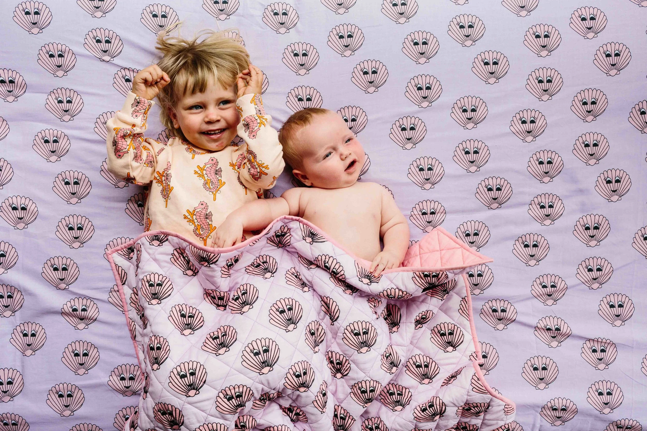 Hugo Loves Tiki x Kip&Co capsule includes four iconic Hugo Loves Tiki prints on Kip&Co’s crowd-pleasing kids’ 100% cotton duvets, sheets, pillow cases, 100% bamboo swaddles, and quilted cotton crib comforters. We are loving all four prints but our favourite would have to be the clams, aren't they just the cutest?!