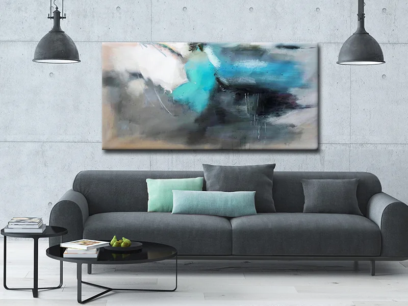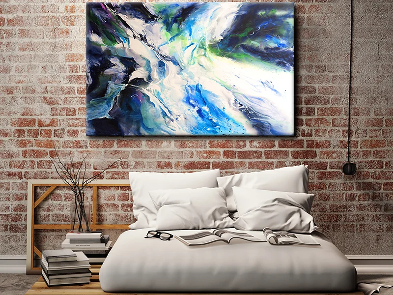 3. Size Matters. The size of your artwork is relevant to the size of your wall and the feature you want to create. You know you have overdone it when your artwork is overpowering your space, and vice versa, you know you have under delivered if you wall looks somewhat empty and sparse in comparison to the rest of the room. Handy tip – use masking tape to mark out the length and height of the canvas space on your wall and take a picture of this space. Send it to us and we can send you back the ‘wall art preview’ (https://www.unitedartworks.net/original-art-paintings/services/preview-art-on-your-wall/) where we have digitally imposed the artwork into that taped area. This is such a convenient service as it allows you to truly visualise what it will look like in your room.